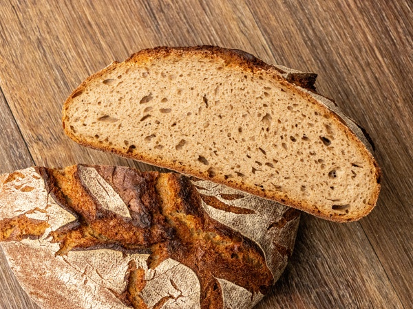 rundes Roggenvollkornsauerteigbrot mit hohem Krustenanteil